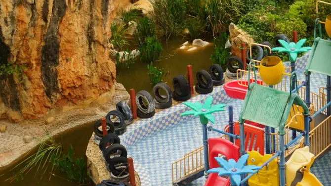石海温泉在保留石林独特自然景观的基础上,利用石林间隙,建设有水疗会所、露天游泳池、造浪海滩等众多大小不等的露天汤池、SPA等休闲娱乐设施。 分别设置了迎宾区、花卉区等,并配套有儿童游乐园、CS真人野战、户外露营等功能设施。