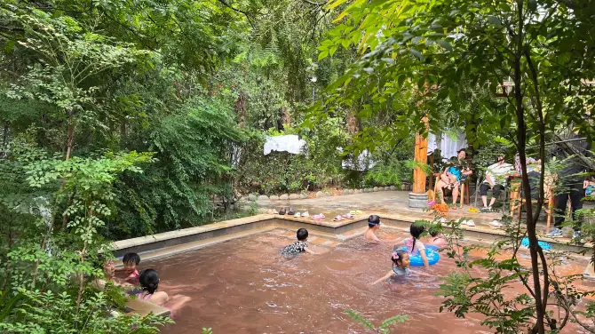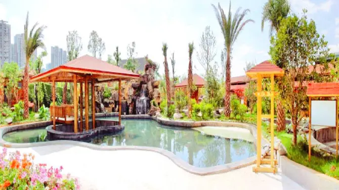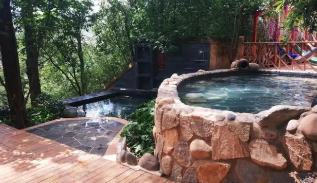 汤池热水河温泉位于昆明市宜良区阳宗海风景名胜区汤池永祥山庄内,以木制园林式中国风为特色,牛奶池、红酒池、白酒池、柠檬池等多个风格各异的露天园林式温泉。 一应俱全的休闲娱乐设施,让您可以劳逸结合、放松身心,体味别样的闲情逸致。