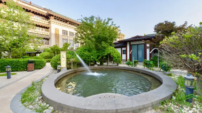 光合谷(天沐)温泉,位于天津市静海县团泊镇。 光合谷(天沐)温泉景区内包括、五行养生区、时空隧道区、温泉水疗区、泳池健身区、地热能量区、休闲热身区等多个区域,各区域中温泉池中的温度也不同,游客可以根据自己的需求,选择不同区域。 光合谷(天沐)温泉内还设有自助餐厅,为游客提供餐饮服务。