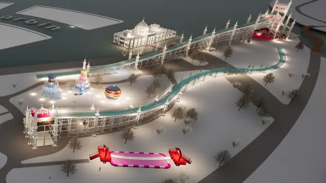 外滩雪人码头的游乐项目有网红打卡大雪人、超长冰滑梯、气垫船、疯狂八爪鱼、冰雪四驱车、网红旋转木马、小火车打卡、雪人舞台等几十项精彩娱乐项目。 其中百米超长冰滑梯采用钢结构底座支架,既保证了安全,又让游玩者有了极速体验的快感。