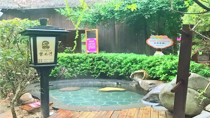 紫龙湾温泉背倚东鹜山,面临紫龙湖,风景秀丽,空气清新,打造了一个很舒适的泡温泉环境。 温泉区有温泉森林冲浪、森林瀑布温泉、冰火泉、脉冲按摩泉、鱼疗、温泉水上运动、温泉瑜珈等,还设有KTV、棋牌室、乒乓球俱乐部以及美容等场所。