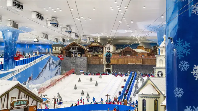长沙除了能吃美食、拍照打卡之外,冰雪运动场馆也不少。 星城潮人们在其中溜冰、滑雪、打冰球、玩冰壶,展示了南方人的冰上英姿、雪上风采。 长沙拥有多个室内滑雪场,如湘江欢乐城欢乐雪域、三只熊冰雪王国等,这些滑雪场为市民和游客提供了不受季节和天气限制的滑雪体验。 滑雪场通过高科技手段模拟出真实的冰雪环境,让游客仿佛置身于北国风光之中。 例如,湘江欢乐城欢乐雪域内部设有上下两座阿尔卑斯小镇,以雪国缆车和滑索相连,风光近似北欧风情。 此外,很多滑雪场还设有冰雕等景观,游客在滑雪之余还可以租借服装打卡拍照,留下难忘的冰雪记忆。 因此,即便身处长沙这座温暖的南方城市,也能轻松开启一场说走就走的滑雪旅程,感受冰雪运动的激情与魅力,让冬日的欢乐与刺激不再受地域限制。